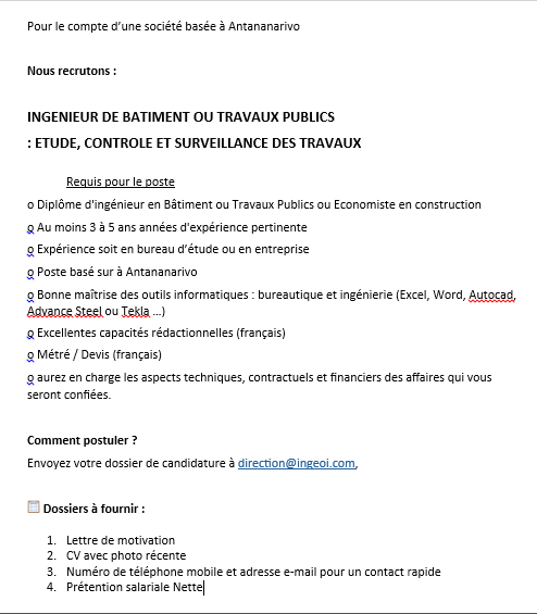 informatiques : bureautique et ingénierie (Excel, Word, Autocad, Advance Steel