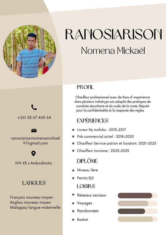 Salama tompoko,izaho dia mitady asa chauffeur