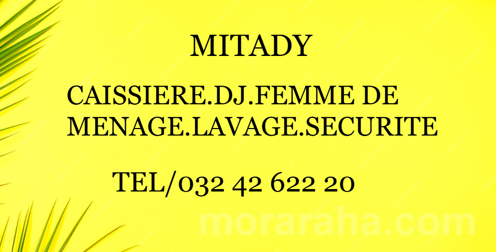 MITADY CAISSIER.DJ.FEMME DE MENAGE .LAVAGE .SECURITE