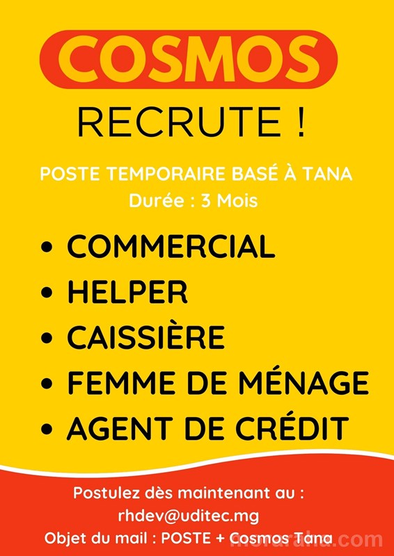 MITADY CAISSIER/FEMME DE MENAGE/AGENT DE CREDIT/COMMERCIAL/HELPER
