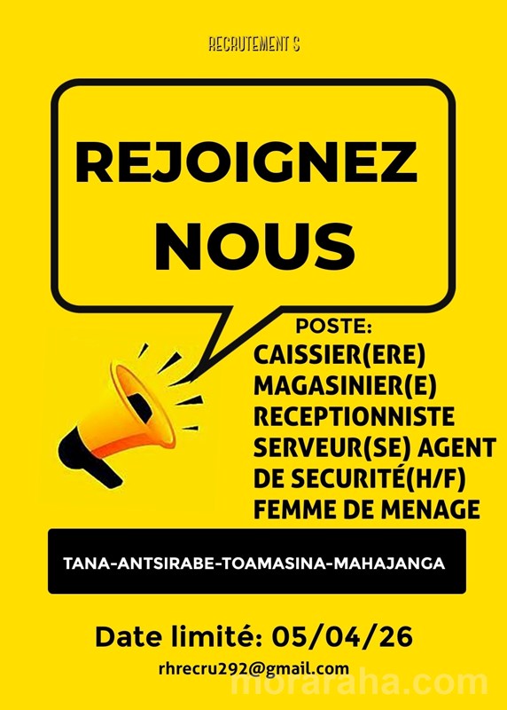 MITADY CAISSIER/MAGASINIER/SERVEUSE/FEMME DE MENAGE/AGEBNT DE SECURITE