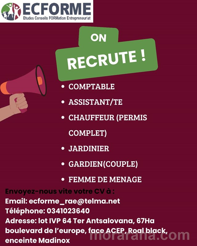 MITADY COMPTABLE/ASSISTANT/CHAUFFEUR/GARDIEN/FEMME DE MENAGE