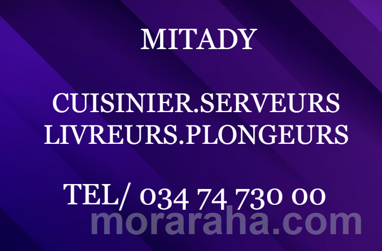 MITADY CUISINIERS/SERVEURS/LIVREURS/PLONGEURS/