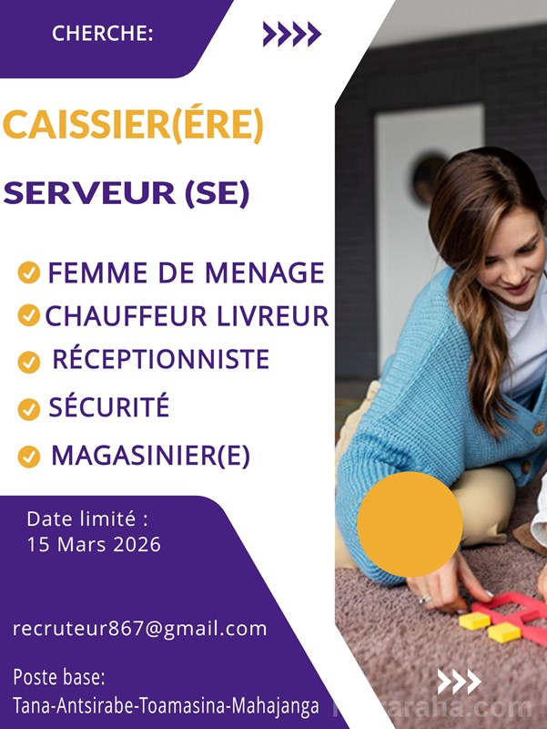MITADY FEMME DE MENAGE/CHAUFFEUR LIVREUR/RECEPTIONNISTE/SECURITE/MAGASINIERE