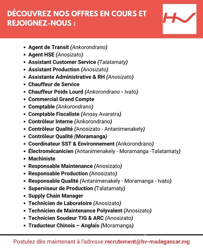 Postulez dès maintenant : 𝐫𝐞𝐜𝐫𝐮𝐭𝐞𝐦𝐞𝐧𝐭@𝐡𝐯-𝐦𝐚𝐝𝐚𝐠𝐚𝐬𝐜𝐚𝐫.𝐦𝐠