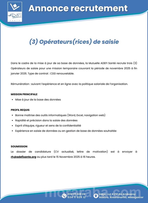 MITADY OPERATEURS DE SAISIE