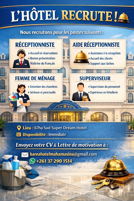 MITADY RECEPTIONNISTE/FEMME DE MENAGE/AIDE RECEPTIONNISTE/SUPERVISEUR
