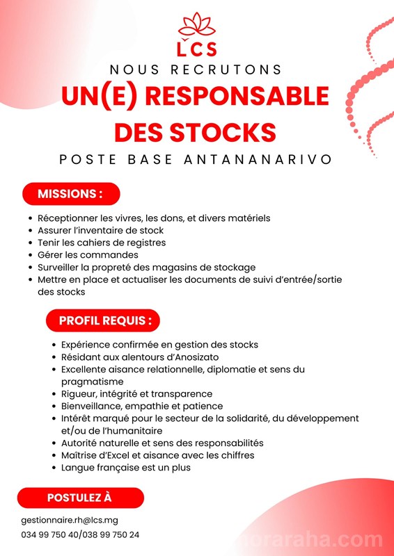 ADRESSE/ gestionnaire.rh@lcs.mg