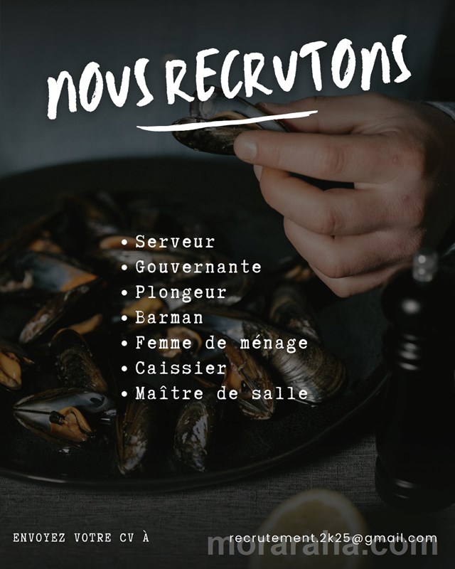 MITADY SERVEUR/GOUVERNANTE/PLONGEUR/CAISSIER/FEMME DE MENAGE/BARMAN