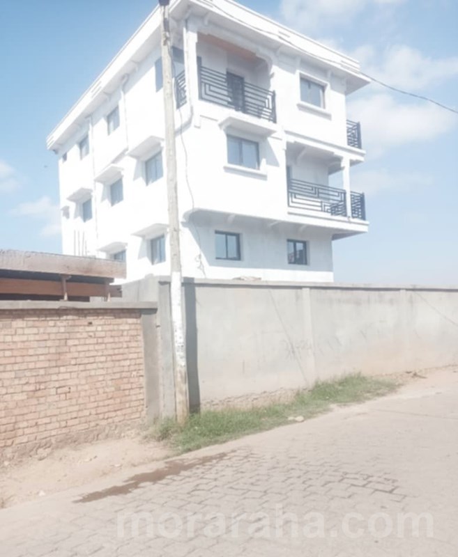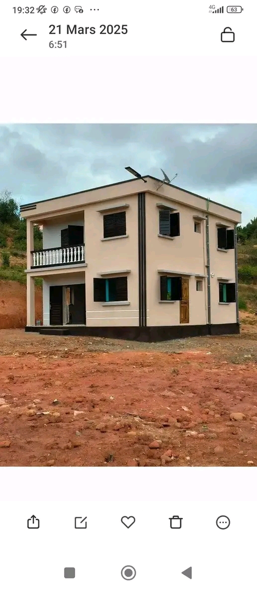 Une maison à trois étages en cours de finition (travaux restants : peinture et carrelage) ;