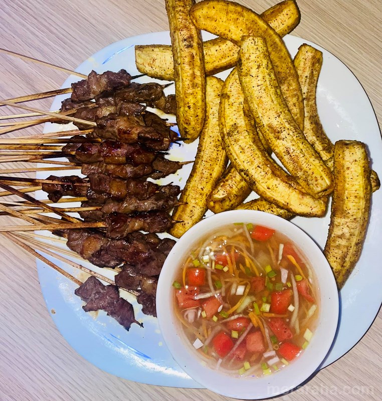 BROCHETTES ZEBUS AVEC BANANES FRITES