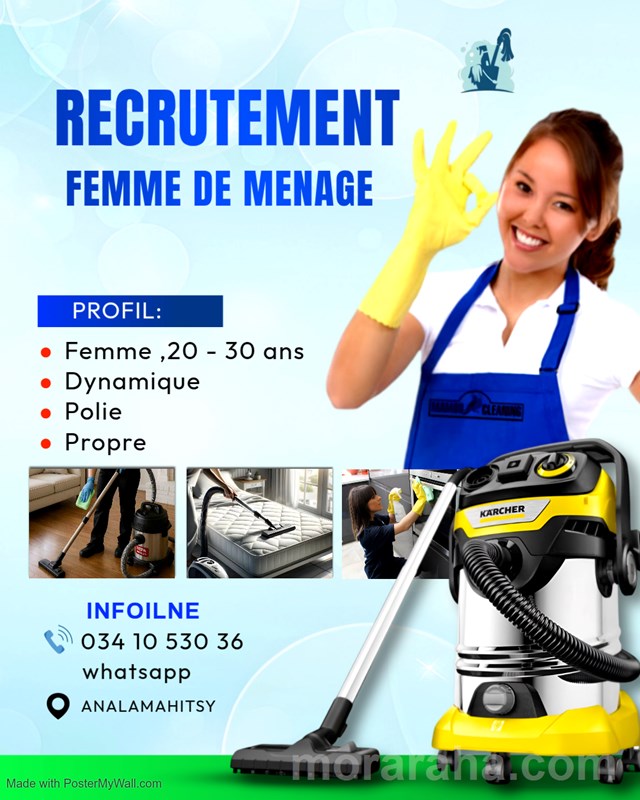 Mitady femme de menage iray,ilaina maika.