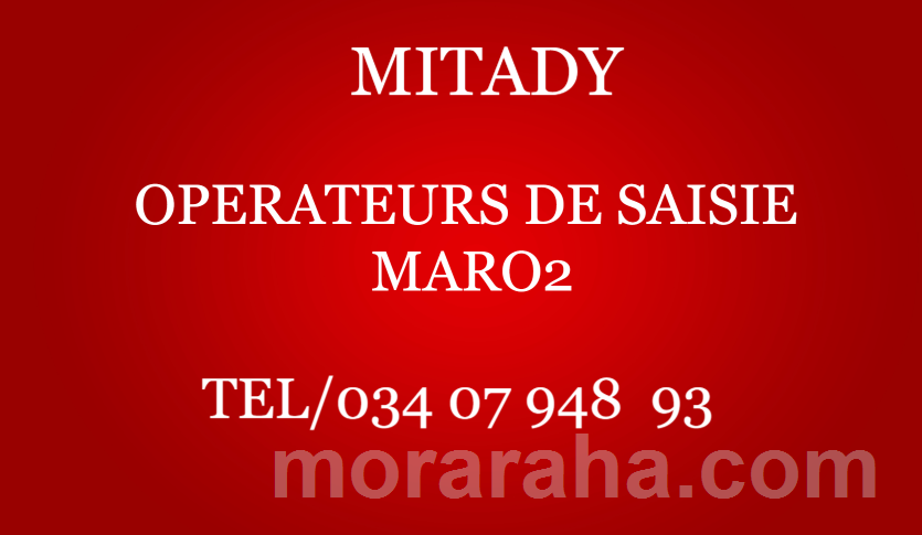 OPERATEUR DE SAISIE SHIFT NUITTest tous les jours à 14h-15hPlaces limitéesLieu Ankadindramamy034 07 948 93