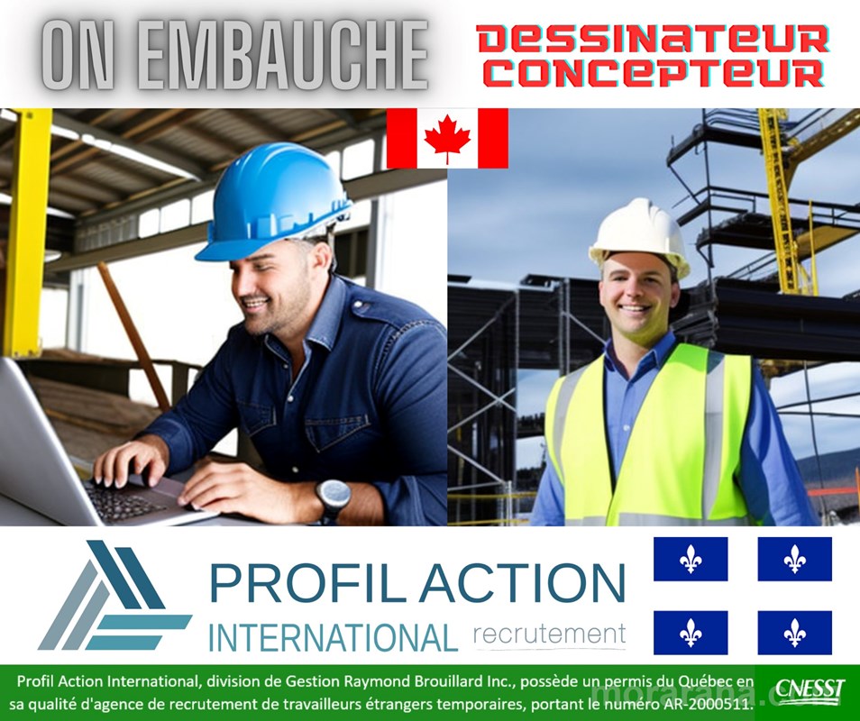 Profil Action International recherche un dessinateur-concepteur (CNP 22212) pour son client de la région de la Ville de Québec au Canada. Poste permanent sur permis de travail de trois (3) ans, renouvelable.
